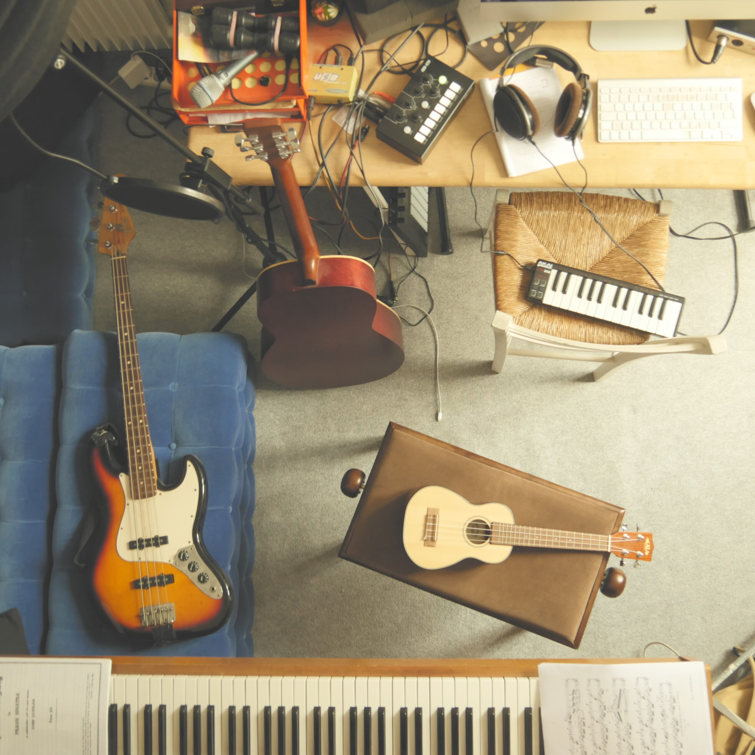 J’ai écrit mes premières chansons sur le piano de mon enfance, un piano droit Steinbach. J’ai très vite aimé improviser et entendre exploser les harmonies au bout de mes doigts, la jambe tendue, appuyant à fond sur la pédale sustain.